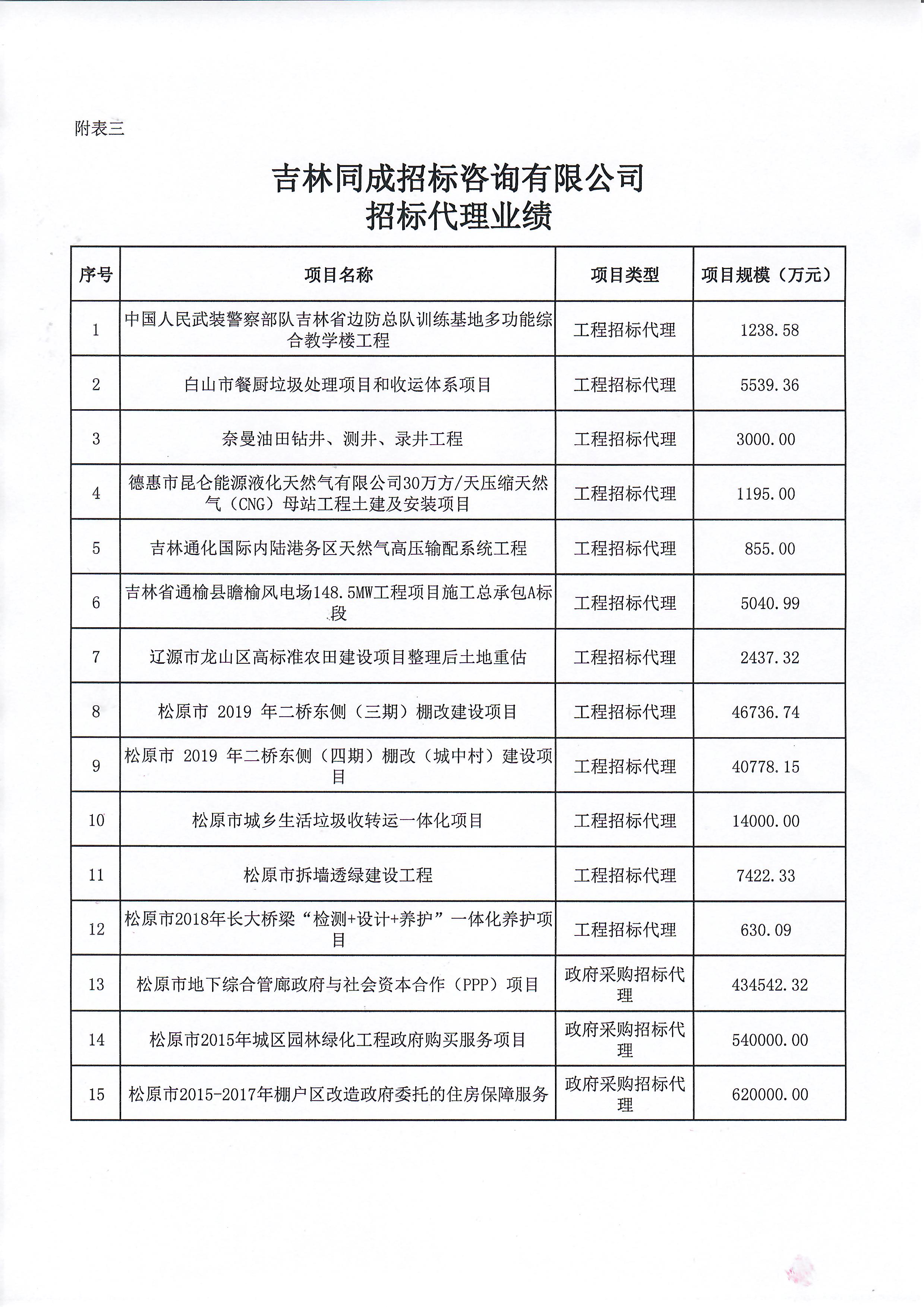 工程建設項目招標業績
